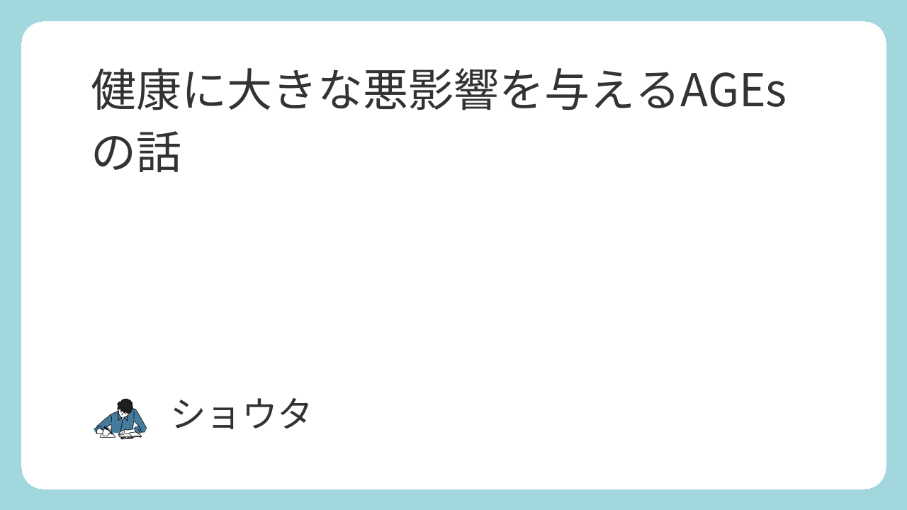 AGEsとは、終末糖化産物(Advanced Glycation Ends Products)の略で、簡単に言うとタンパク質と糖がくっついてできる有害物質のこと。細胞にダメージを与え、炎症を促進し、酸化ストレス増大、ガン細胞の増殖を促すなど、相当やばいやつみたいです。正直読んでて自分の体のことが心配になりました…。